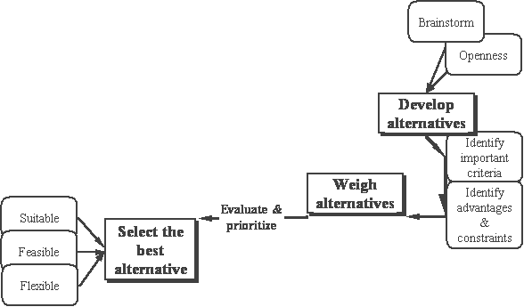 Add the scores for each row/alternative; highest score is the highest rated alternative according to the criteria you used. In the matrix above, Alternative C scores highest, so it's the highest rated alternative