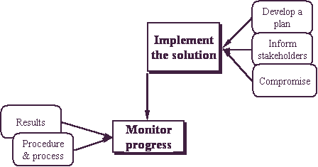 Your implementation will only be successful if you are monitoring your solution, the effects of it on resources and stakeholders, your timeline, and your progress. As you monitor your progress, if results are not what you expect, review your options and alternatives.