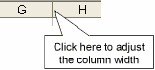column headings G and H. This adjusts the column width to